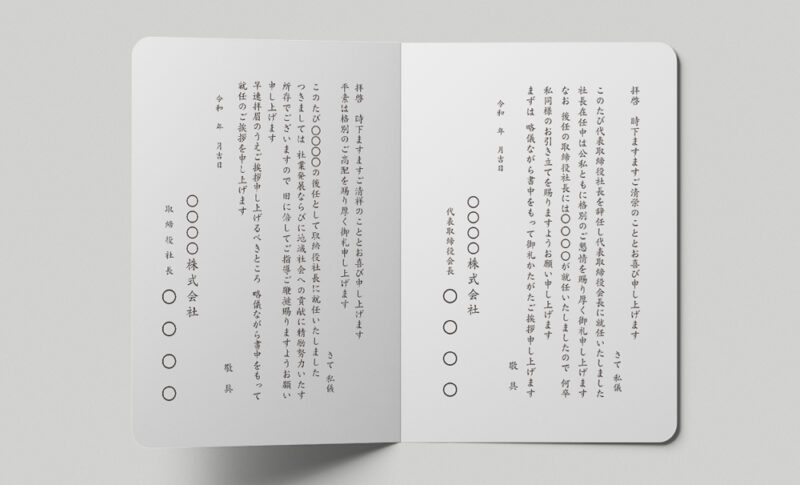 挨拶文の文面例もこちらでご用意し、ご希望に合わせて調整いたします。